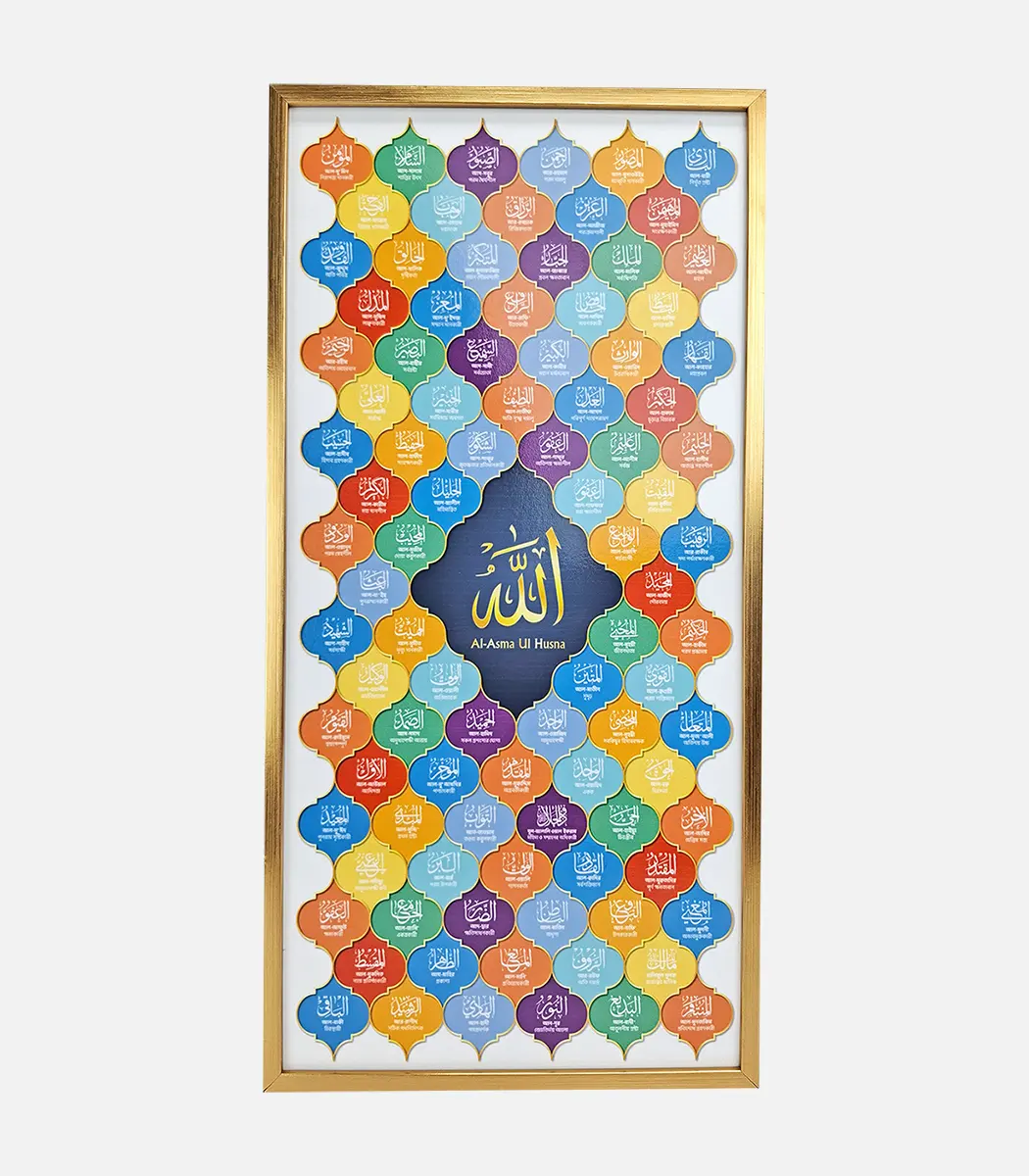 ঘর ও অফিসের সাজসজ্জার জন্য আকর্ষণীয় আরবি ক্যালিগ্রাফি সমৃদ্ধ আল্লাহ তা’য়ালার ৯৯ নামের ইসলামিক ওয়াল ডেকর।