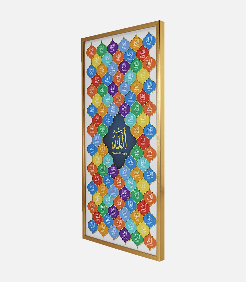 Asma-ul-Husna | 99 Names of Allah | Portrait wall hanging hook.